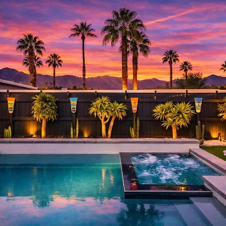 Mid-Century Modern Home In Beautiful La Quinta, situada a 25 minutos a pie de la Fred Wolff Nature Preserve, ofrece un patio soleado con vistas a las montañas. Con un jacuzzi, esta villa está situada a 6 km de Shields Date Garden.